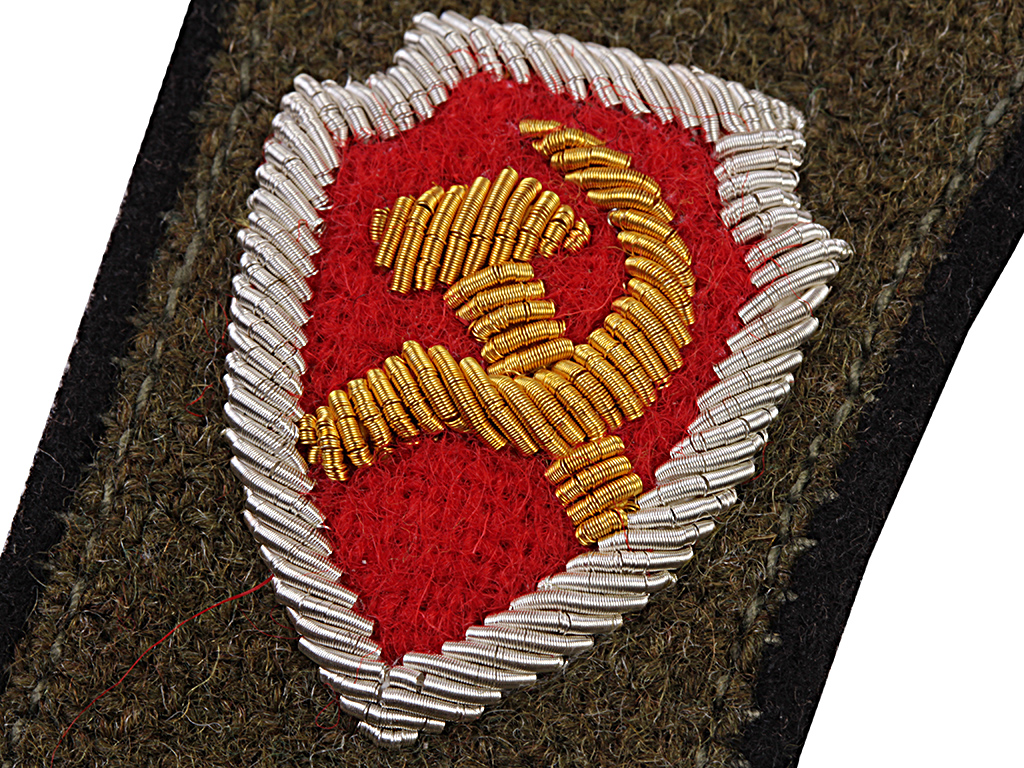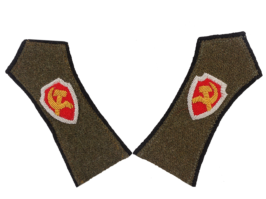 Петлицы начальника пешей милиции, введенные Приказом № 119 от 18.09.1924 взамен ранних петличных знаков различия, введенных 20.03.1923. Поле петлиц - зеленого цвета (для пешей милиции. Конная имела желтые петлицы, ведомственная - бирюзовые, черные петлицы носили сотрудники административно-хозяйственного состава). Окантовка петлиц черная, в верхней части помещен окантованный серебром красный щит с золотым серпом и молотом.