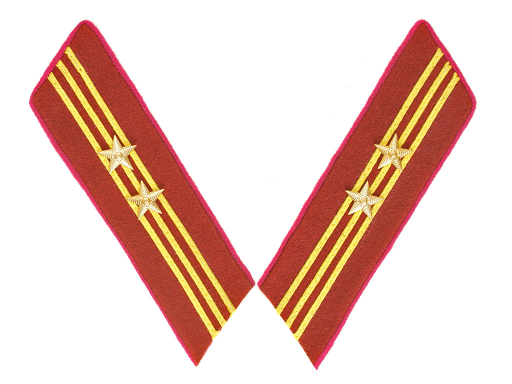 Для высшего начсостава пожарной охраны устанавливается ношение на петлицах трех полосок (вместо существующих двух полосок), согласно прилагаемым образцам.