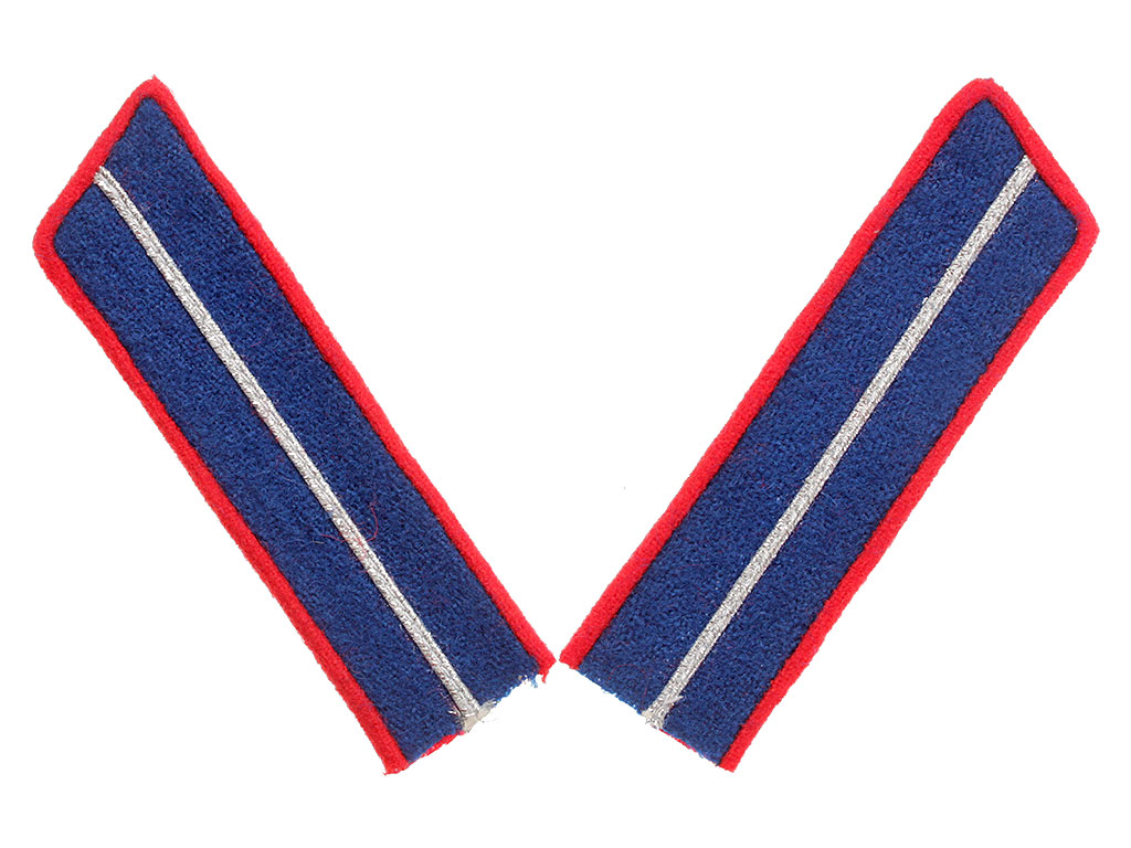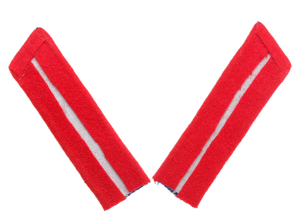 Петлицы василькового цвета в форме параллелограмма длиной 9-10 см и шириной 3,3 см окантовывались с двух продольных и одной поперечной сторон красной выпушкой, шириной 0,25 см; посередине петлицы нашивался продольный сутажный шнур шириной 0,3 см: