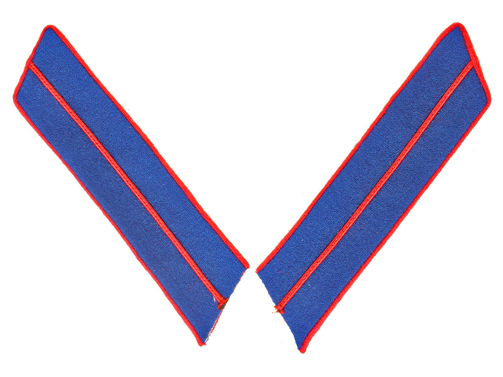 Петлицы василькового цвета в форме параллелограмма длиной 9-10 см и шириной 3,3 см окантовывались с двух продольных и одной поперечной сторон красной выпушкой, шириной 0,25 см; посередине петлицы нашивался продольный сутажный шнур шириной 0,3 см: