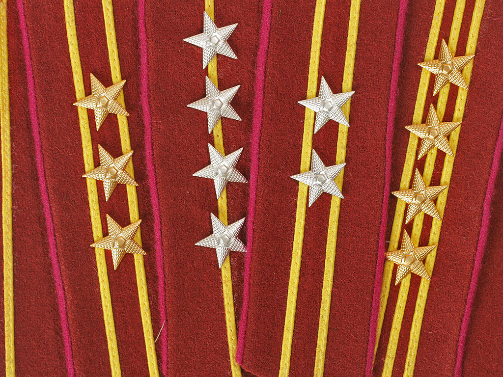 Средний, старший и высший начальствующий состав на левом рукаве (выше локтя) рубахи, пальто и шинели носит эмблему.