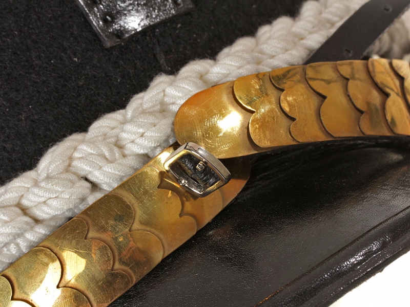 Кивер образца 1812 года с унтер-офицерским этишкетом и подборочной чешуей носилась в гвардейских гренадерских частях. Россия
