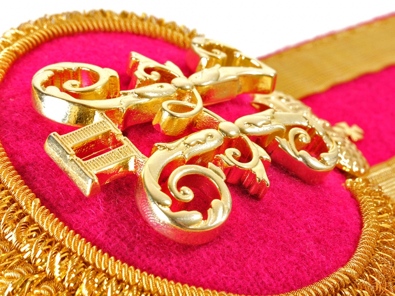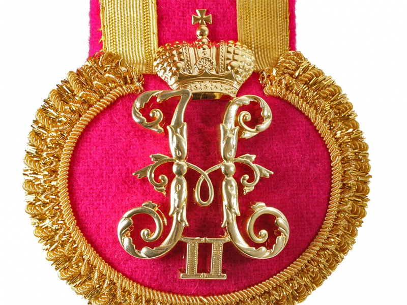 Большой позолоченный вензель Императора Николая II с короной для погон и эполет. Традиционно правящий император являлся Высочайшим Шефом первых рот (эскадронов, сотен) некоторых гвардейских и армейских полков. Эти роты, эскадроны и сотни именовались не по номеру (вторая рота, четвертая рота, ...) а "рота Его Императорского Величества". Командиры и офицеры таких рот носили на погонах и эполетах вензеля Николая II.
