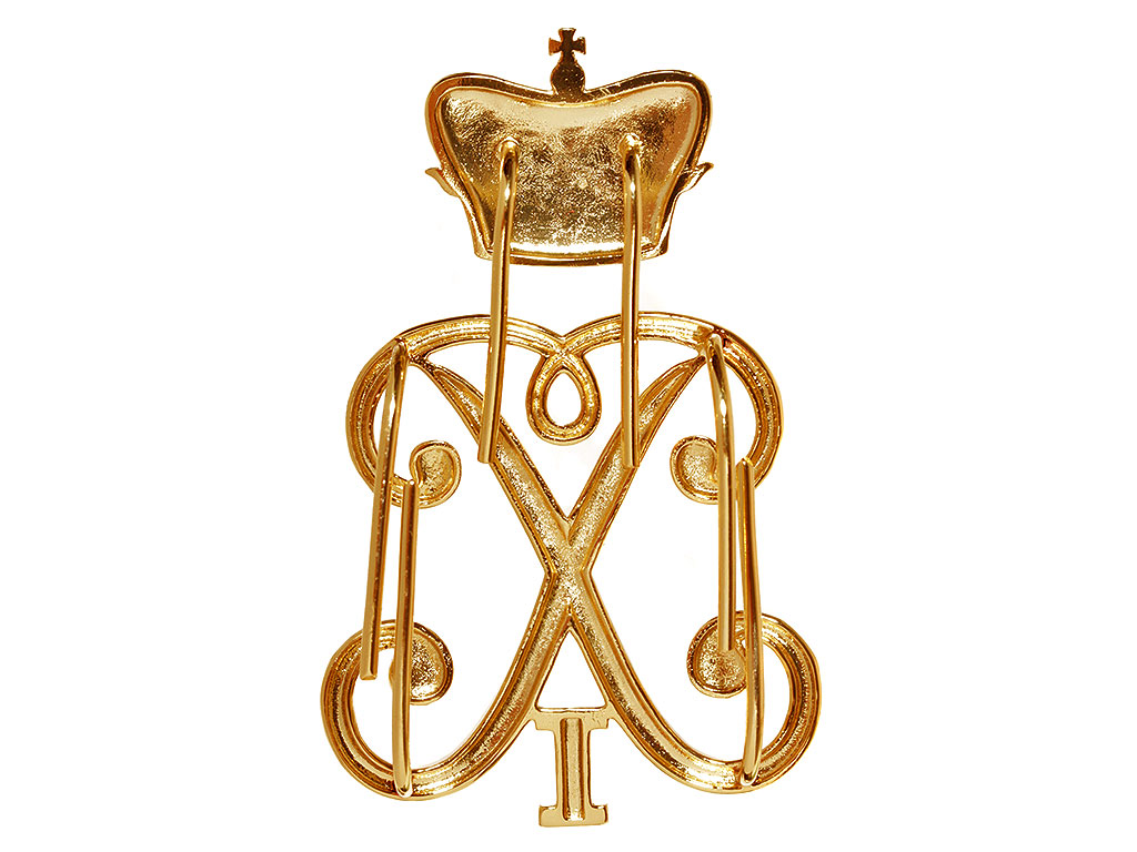 Вензель большой позолоченный императора Петра I. Представляет собой две скрещенные латинские буквы "Р" с римкой цифрой "I" под ними.
