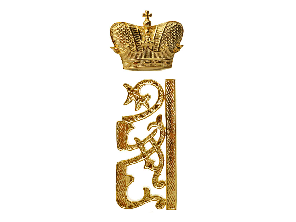 Вензель Наследника Цесаревича Алексея Николаевича с короной на погон офицеров тех полков и училищ (сообразно цвету прибора), Высочайшим Шефом которых он являлся. В отличие от Императора, который был Шефом первых рот полков, Наследник Цесаревич являлся Шефом всего полка, поэтому его вензель носили все офицеры и нижние чины (офицерский - позолоченный или посеребренный, для нижних чинов - латунный или никелированный).