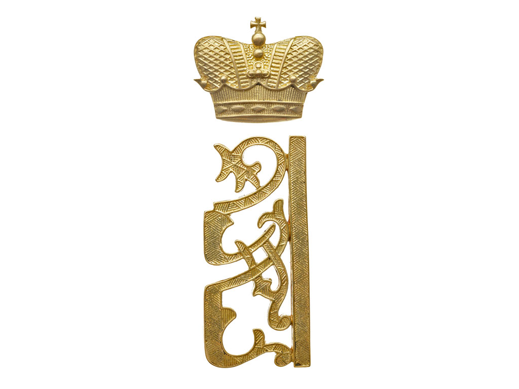 Вензель Наследника Цесаревича Алексея Николаевича с короной на погон офицеров тех полков и училищ (сообразно цвету прибора), Высочайшим Шефом которых он являлся. В отличие от Императора, который был Шефом первых рот полков, Наследник Цесаревич являлся Шефом всего полка, поэтому его вензель носили все офицеры и нижние чины (офицерский - позолоченный или посеребренный, для нижних чинов - латунный или никелированный).