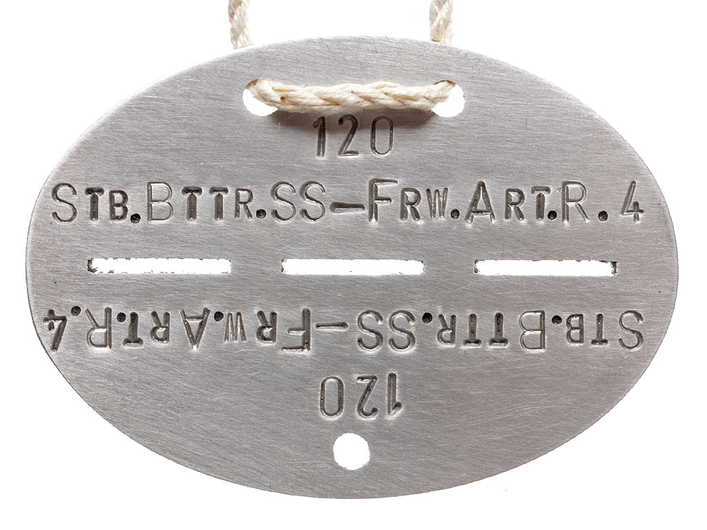 Личный опознавательный жетон (знак) военнослужащего штаба батареи 4-го добровольческого артиллерийского полка войск СС, качественно изготовленный специально для военно-исторической реконструкции.