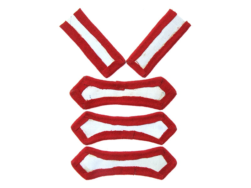 Лот знаков различия - пары петлиц и трех нагрудных клапанов (разговоров) на гимнастерку, френч Революционного военного трибунала (органы ГПУ), введенных в 1922 году. Для полного комлекта требуется еще нарукавный клапан с красной звездой.