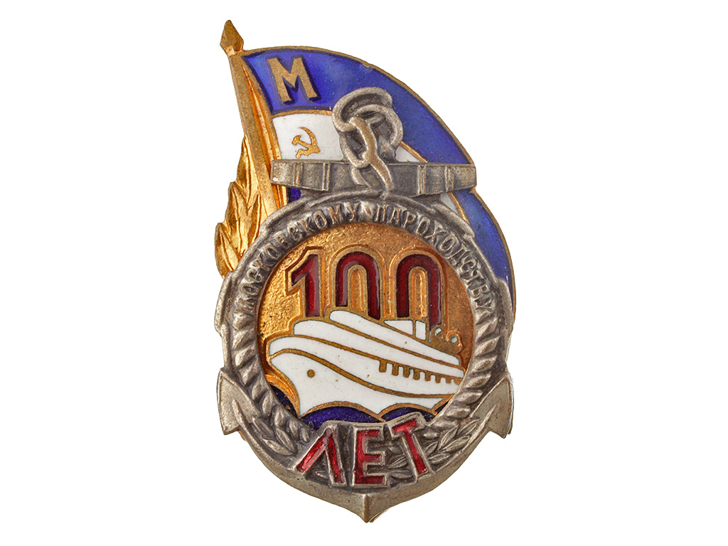 Знак "100 лет Московскому пароходству", СССР