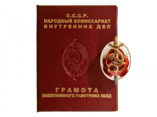 Знак "Заслуженный работник НКВД" обр.1940 года с Грамотой (НКГБ, ранний вариант). СССР, копия...