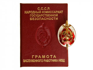 Знак "Заслуженный работник НКВД" обр.1940 года с Грамотой (КГБ, поздний вариант). СССР, копия...