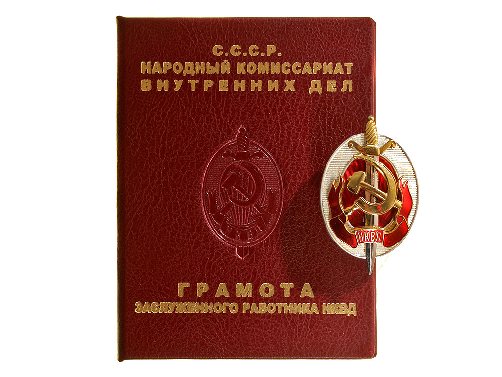 Знак «Заслуженный работник НКВД» присваивался как приказами по НКВД, так и по НКГБ СССР после разделения Наркомата. Нам известны приказы по Наркомату госбезопасности, изданные в 1941 и 1944 г., которыми производилось награждение чекистов знаком «Заслуженный работник НКВД».