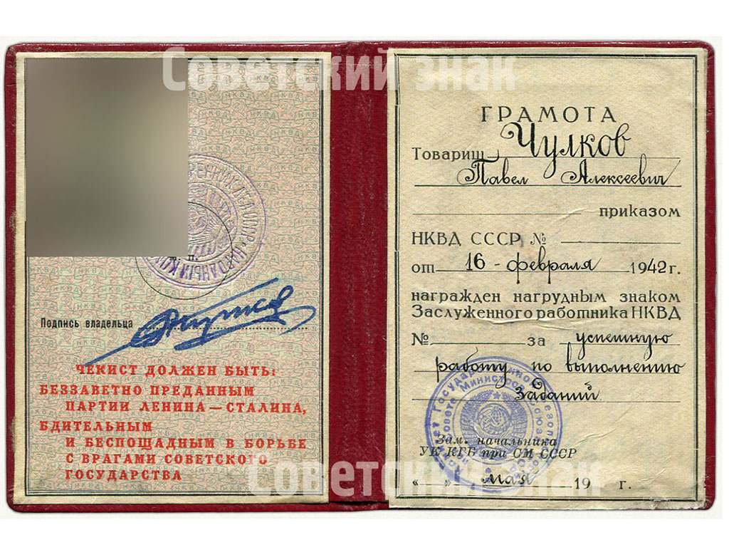 5. Награжденные могут быть лишены знаки «Заслуженный работник НКВД» за порочащие звание чекиста проступки приказом Народного Комиссара Внутренних Дел СССР.