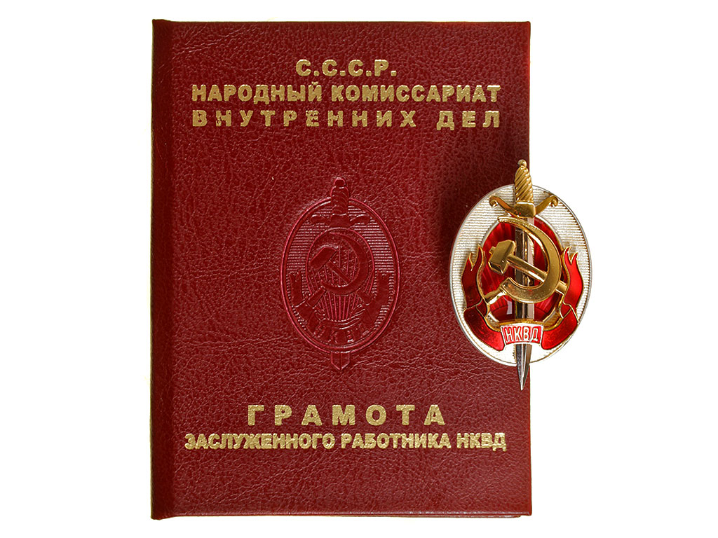 Знак «Заслуженный работник НКВД» присваивался как приказами по НКВД, так и по НКГБ СССР после разделения Наркомата. Нам известны приказы по Наркомату госбезопасности, изданные в 1941 и 1944 г., которыми производилось награждение чекистов знаком «Заслуженный работник НКВД».